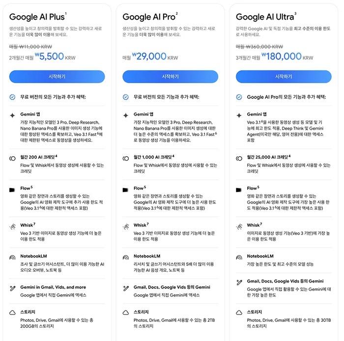 참고로 구글 AI 플러스를 처음 가입하는 이용자에게 두 달 동안 월 요금을 5천500원을 적용하기로 했으나, 구글 AI 플러스보다 900원 더 비싼 2TB 구글 원 프리미엄 가입자는 세 달 동안 월 2천975원에 이용할 수 있습니다.