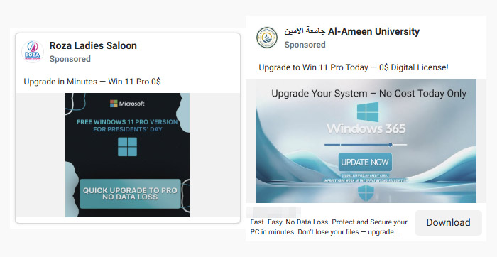 Home > #새소식 > 페이스북의 무료 윈도 11 업그레이드 광고 통한 악성코드 감염 주의